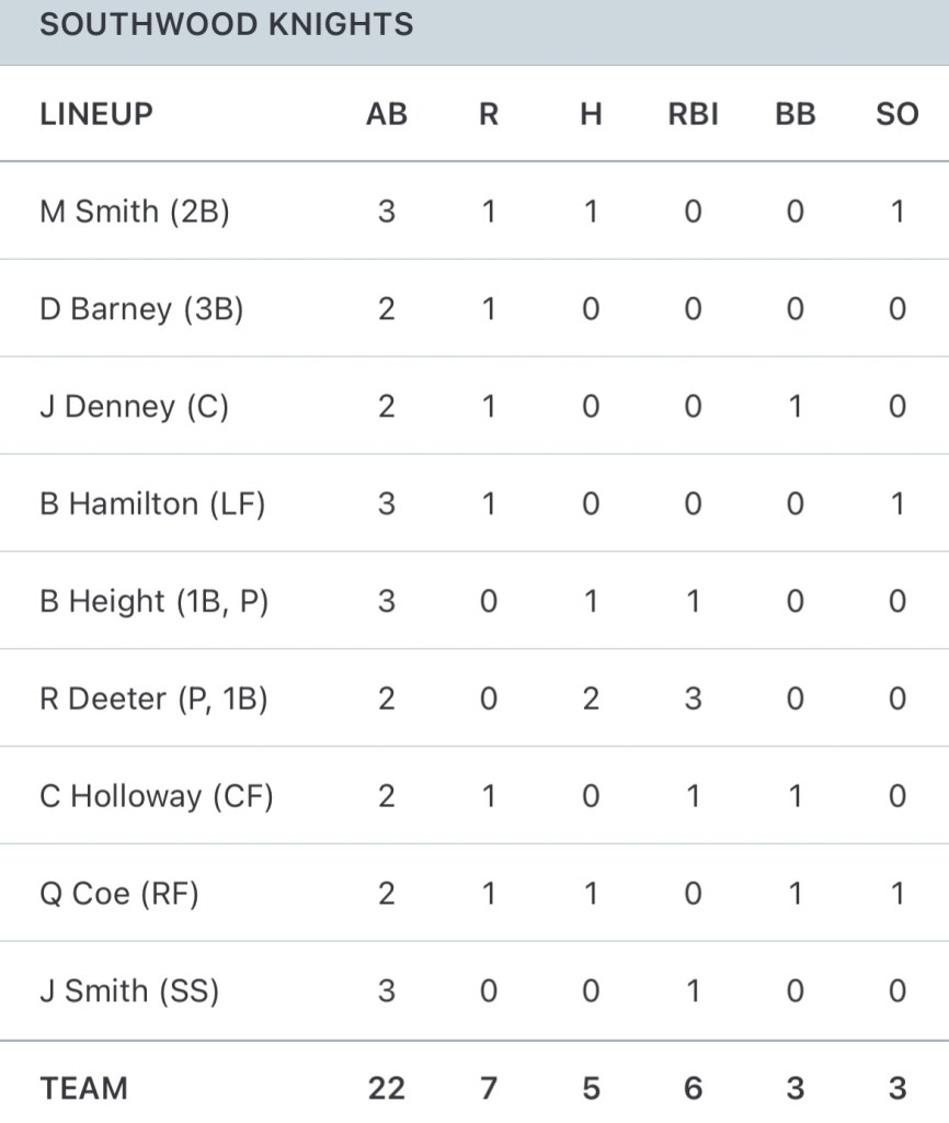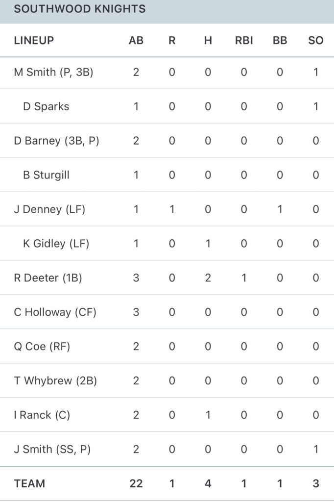 The Southwood baseball team lost two games to Oak Hill Saturday.