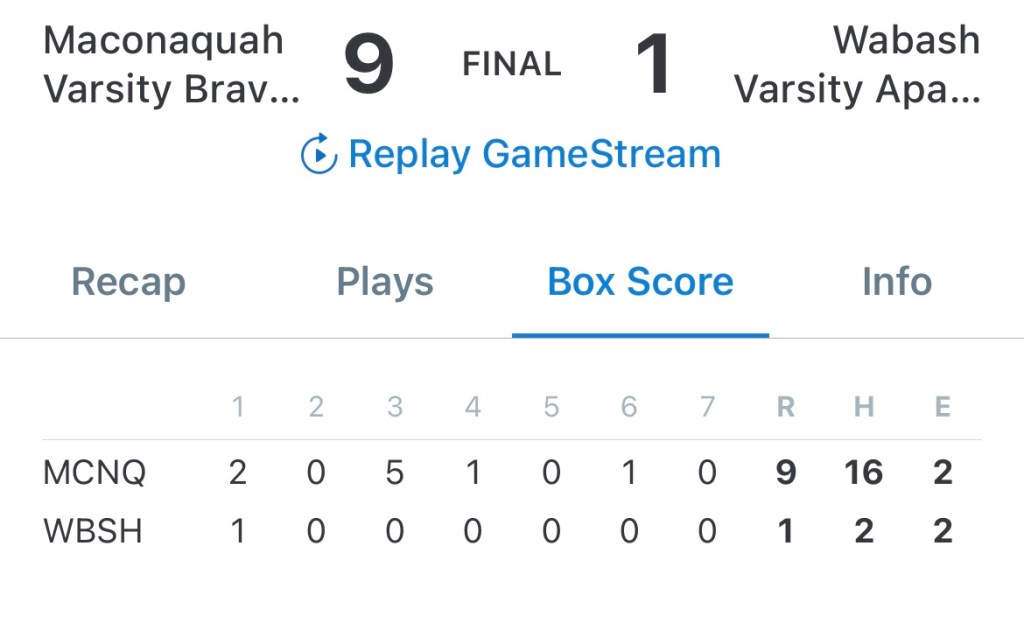 The Wabash softball team fell to Maconaquah 9-1 Wednesday.