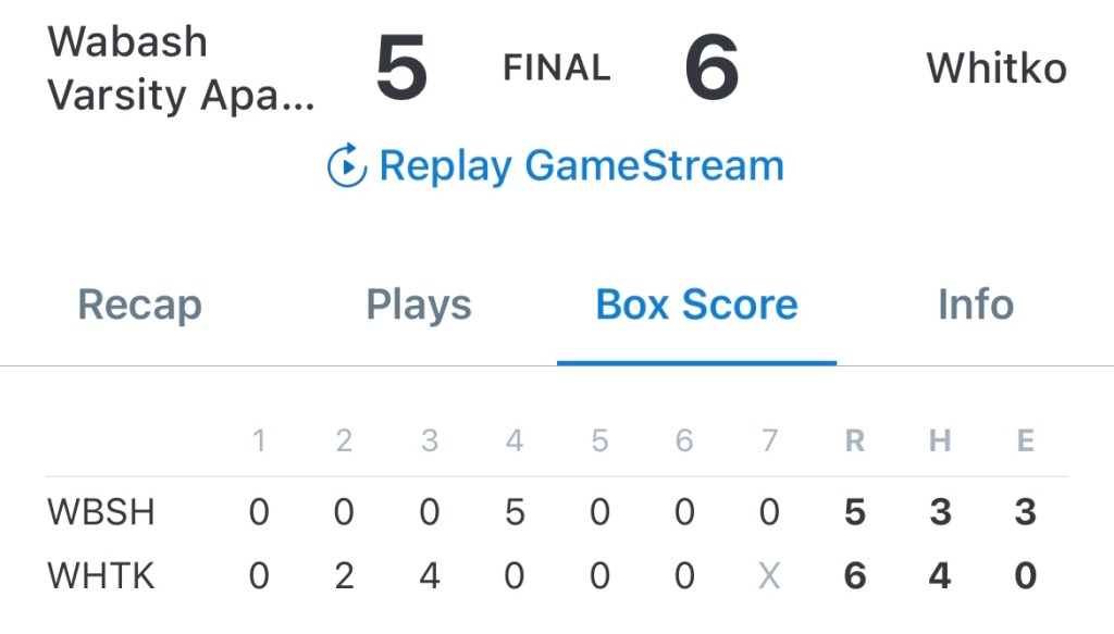 The Wabash baseball team fell to Whitko 6-5 Wednesday