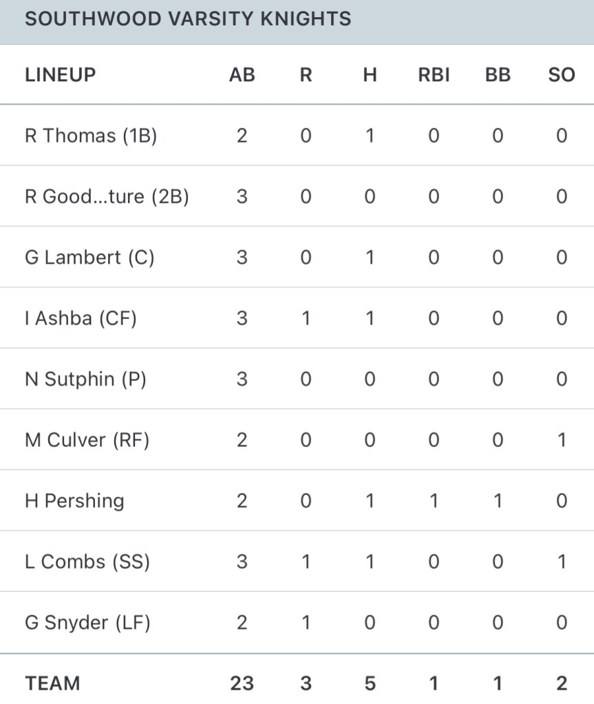 The Knights would plate 2 runs in the fifth. With one out Lili Combs would single and was followed by a Gracie Snyder bunt. A Rylee Thomas sac bunt put runners on second and third before Rowynn Goodpasture laid down a bunt and reached on a throwing error, scoring both runners.